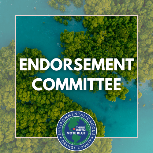 The Endorsement Committee of the Orange County Democratic Environmental Caucus is essential in identifying and supporting candidates who align with our environmental priorities. This committee is responsible for developing and implementing a thorough endorsement process, ensuring that endorsed candidates are committed to advancing key local and legislative environmental issues.